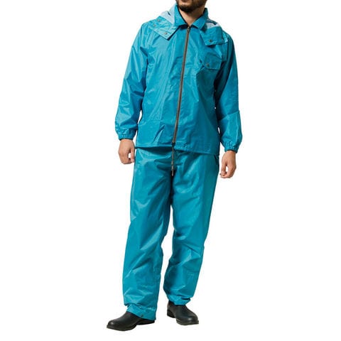 耐水圧10000mmH2O、エントリーモデルに最適、フードも足元も楽々調節可能な耐久レインスーツ●取り外し可能なフードは調節用のドットボタンでサイズ調整が可能●フロントファスナーの内部にはフラップを装備し、正面からの浸水を防ぎます●裾のボタンで2段階(最大10cm)の裾上げ調節が可能