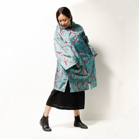 耐水圧5000mmH2O透湿度2000g/m2-24h、着心地のよいゆったりとしたシルエットのレインポンチョドレス、豊富な柄デザインで雨の日をおしゃれに着こなします。