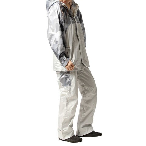 耐水圧15000mmH2O 透湿度10000g/m2-24h、肩に縫い目の無いドルマンスリーブでデザイン面だけでなく防水性も向上し、高耐水・高透湿を実現したレインスーツ●使わない特はフードを丸めてワイドカバーで固定できるロールアップフード●脇が突っ張らない構造なので腕の上げ下げがスムーズです●左胸部には内ポケット付き●膝部分はダーツ加工で立体的に仕上げ、可動する領域が増加し、屈伸等が楽に行えます