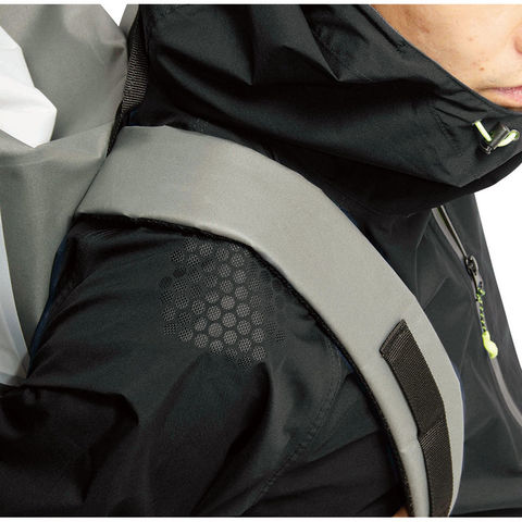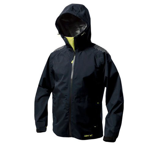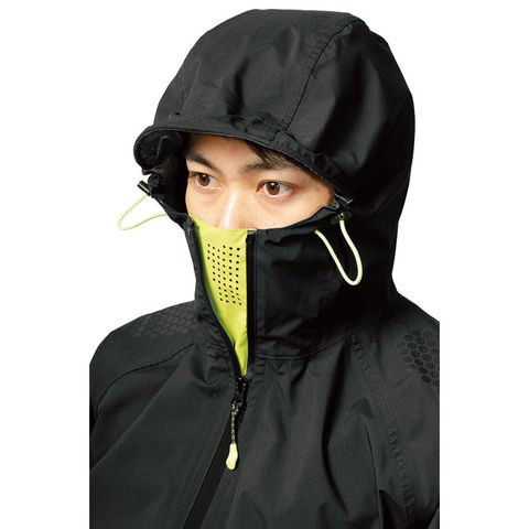 耐水圧10000mmH2O 透湿度5000g/m2-24h、ストレッチの快適性、蛍光反射による視認性、両面ベンチレーションの通気性を確保したレインジャケット●未使用時は小さくスタンドカラーになるロールアップフード●内側フラップにはフード使用時も内部が蒸れにくい空気穴付きベンチレーションを搭載●プリント補強された肩部は摩耗や損傷を軽減し、荷物のズレ落ちも防ぎます●背面に反射糸とベンチレーションを採用し、夜間の視認性を高めて背中の蒸れを軽減●通常時は鮮やかに目立ち、暗所では光を反射する蛍光反射付