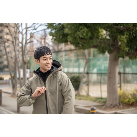 素材:ポリエステル100%(熱可塑性ポリウレタンラミネート)裏地 ポリエステル100% トリコット袖部分 ポリエステル100%(熱可塑性ポリウレタンラミネート)裏地 ポリエステル100% メッシュ(袖部分)はっ水(水をはじきやすい)