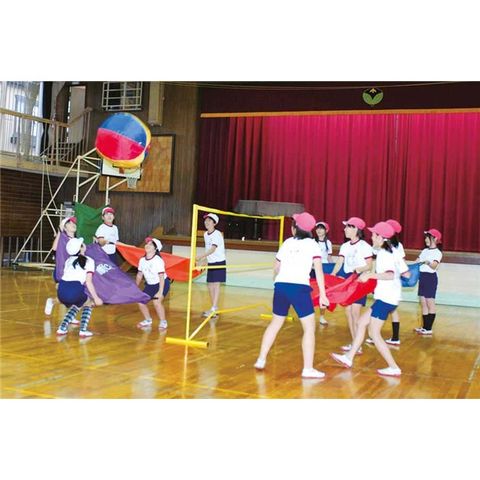 ■セット内容:エアボール×2ケ、パラシュート3人用×6枚(青・赤・黄・オレンジ・緑・紫各1枚)