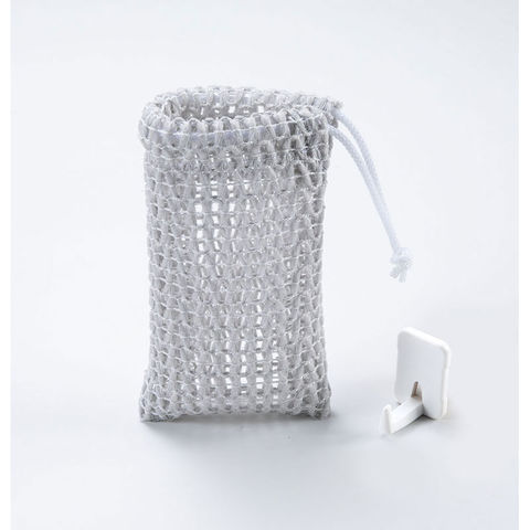 素材:メッシュ/ポリエステル、ひも/ナイロン、掛けフック/スチロール樹脂・アクリル系粘着剤
