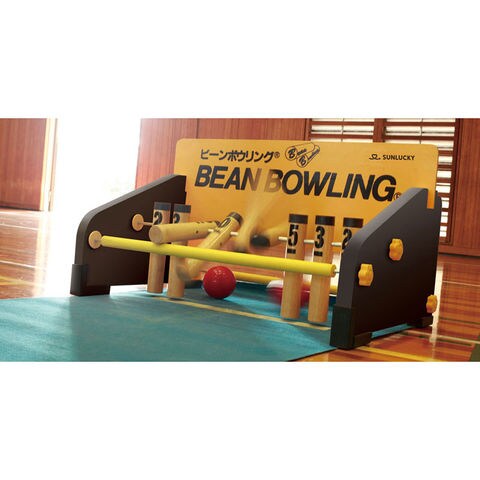 【ビーンボウリング(経済産業省NEDO医療福祉機器助成開発商品)】あらかじめセットしてあるピンにめがけてボールを転がし、ピンを回転させて得点とするゲーム。
