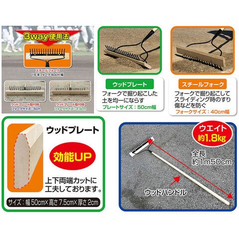 (代金引換・個人宅・北海道・沖縄への配送不可)UNIX(ユニックス) グランドサポートマルチレーキ3本セット 野球&ソフトボール 器具 (bx7902)