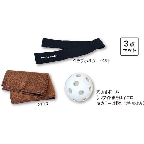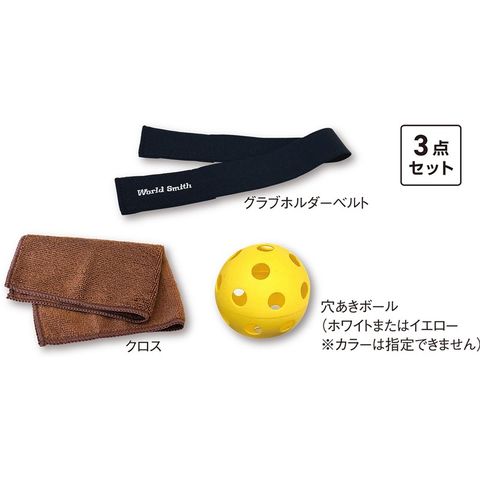 グラブの形状を保つグラブホルダーベルト ボールと専用クロスの 3 点セットです ボールをグラブにセットして自分の好きな位置で巻いて止めるだけ 汚れを落とすクロスで汚れもすっきり 収納時に大活躍!