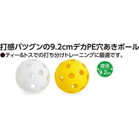 ティー・トス・室内練習球として最適な、飛びにくい打感バツグンの穴あきボールです。