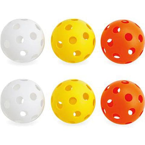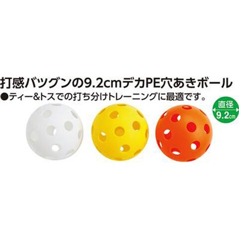 ティー・トス・室内練習球として最適な、飛びにくい打感バツグンの穴あきボールです。