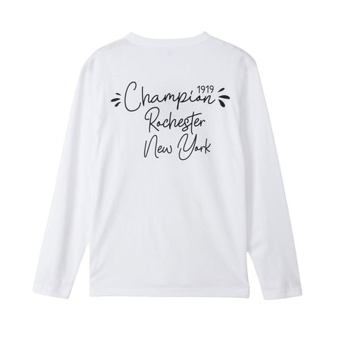 胸には手書き風の書体による「Champion 1919」の刺繍、背中には同じ書体で大きく3段に組んだ「Champion 1919 Rochester New York(チャンピオン 1919 ロチェスター ニューヨーク)」のプリント入り。