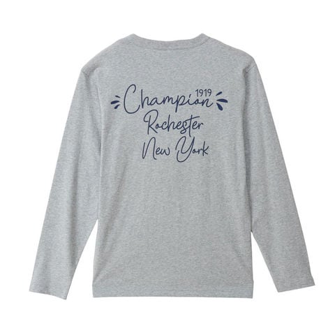 胸には手書き風の書体による「Champion 1919」の刺繍、背中には同じ書体で大きく3段に組んだ「Champion 1919 Rochester New York(チャンピオン 1919 ロチェスター ニューヨーク)」のプリント入り。