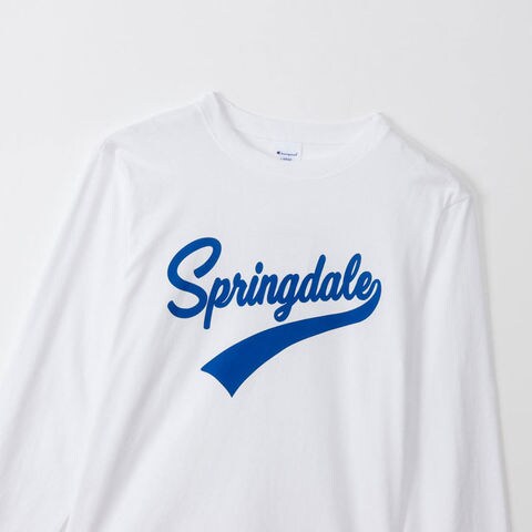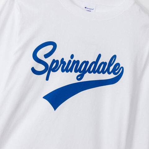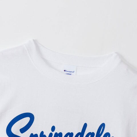 胸のプリントはチャンピオンと親和性の高いカレッジ風の書体をベースにしたもので、文字とリボンを組み合わせたデザイン、アーチ状およびストレート状に組んだ文字とカプセルナンバーを組み合わせたデザインの2タイプ(6種類)。