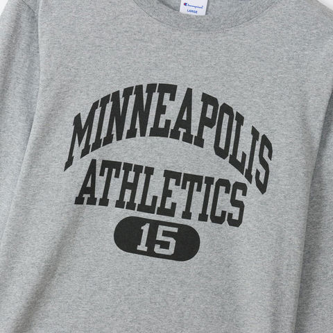 胸のプリントはチャンピオンと親和性の高いカレッジ風の書体をベースにしたもので、文字とリボンを組み合わせたデザイン、アーチ状およびストレート状に組んだ文字とカプセルナンバーを組み合わせたデザインの2タイプ(6種類)。
