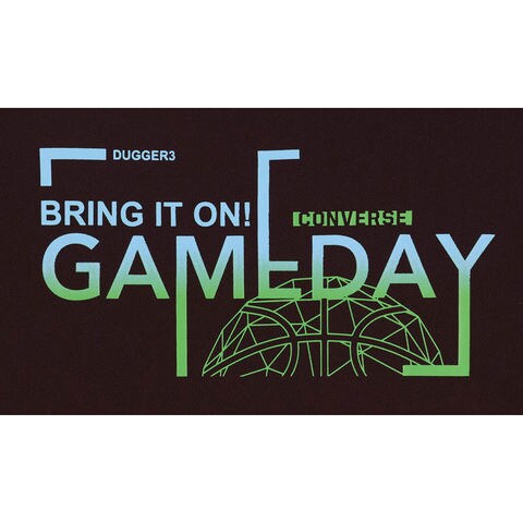 シンプルなタイポグラフィにグラデーションを効かせたTシャツデザイン。