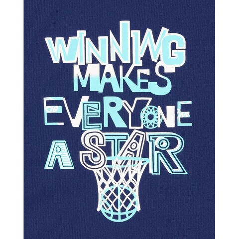 ポップなロゴにバスケットボールのモチーフを使ったグラフィックTシャツ。