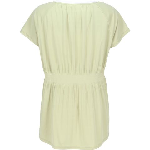 後身頃を少し長くし、さりげなくウエストをマークした女性らしいデザインです。