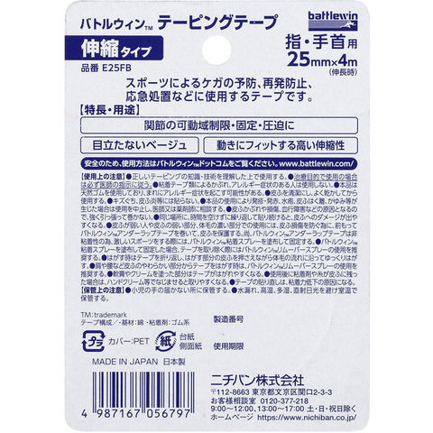 【ロット販売:入り数12】 NICHIBAN ニチバン バトルウィン テーピングテープ 伸縮タイプ 指・手首用 ボディーケア テーピング e25fb