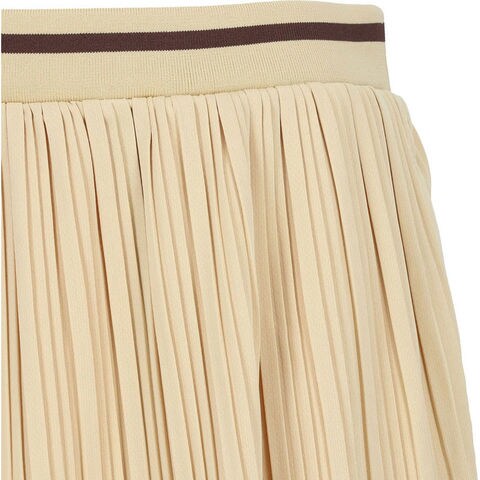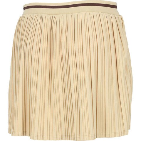 スッキリとした台形スコートも変形プリーツ加工することで、おしゃれ度アップ。