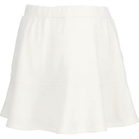 コンパクトな台形スコートに大人の女性の可愛らしさを演出するフレアーを裾周りに配置しました。