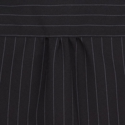 シワになりにくい布帛のピンストライプはシックな秋冬のテニスファッションにピッタリ。