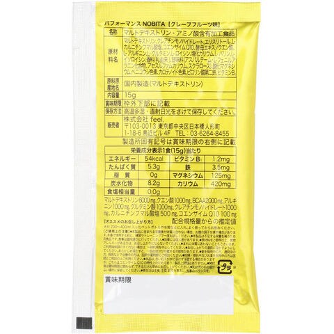 【ロット販売:入り数30】 Spazio(スパッツィオ) パフォーマンス NOBITA グレープフルーツ味 ボディーケア スポーツ食品 (fd0005-07)