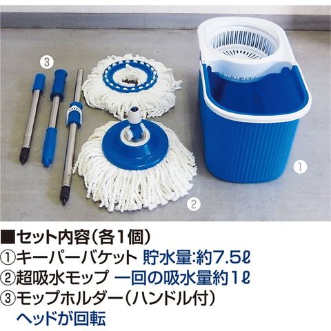 素材:バスケット/ポリプロピレン、モップホルダー/ポリプロピレン・アルミ合金、モップ/合成繊維