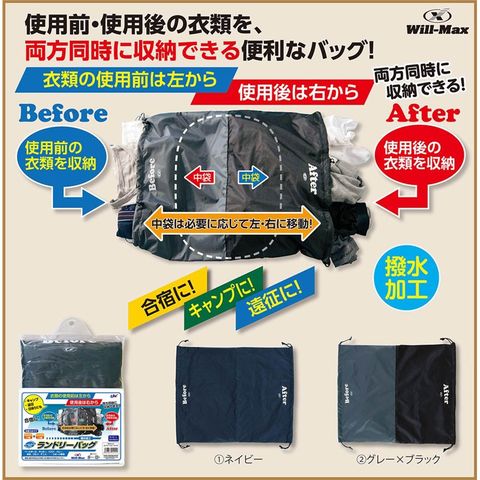 使用前・使用後の衣類を、両方同時に収納できる便利なバッグ!