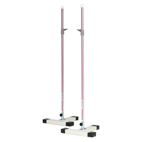 ●サイズ:ベース直径35.5CM、ポール直径3.2CM●素材:ベース=スチール製すべり止めゴム付、ポールアルミ製●重量:9.8KG/組●使用範囲:210CM迄●バー受け5段式●丸ベース=ワンタッチストッパー