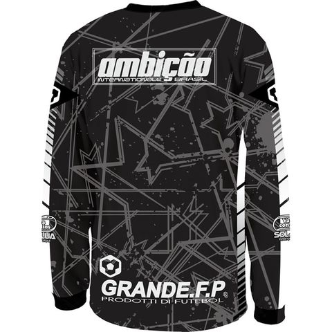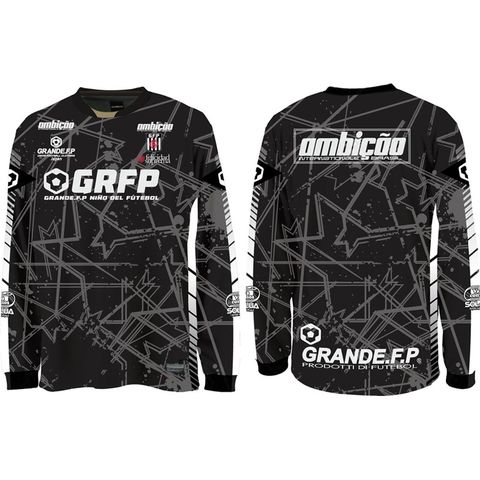 GRANDE.F.P定番の.吸汗速乾性に優れたドライメッシュ素材を使用し、パスサッカーを幾何学的にイメージした柄と、様々なロゴプリントでデザインされたインパクトを与えること間違いなしのプラクティスシャツ。