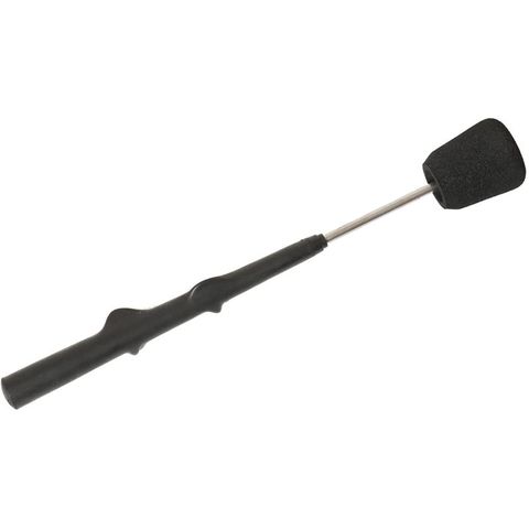 正しいグリップが覚えられるモデルグリップを装着した素振り用練習器具。