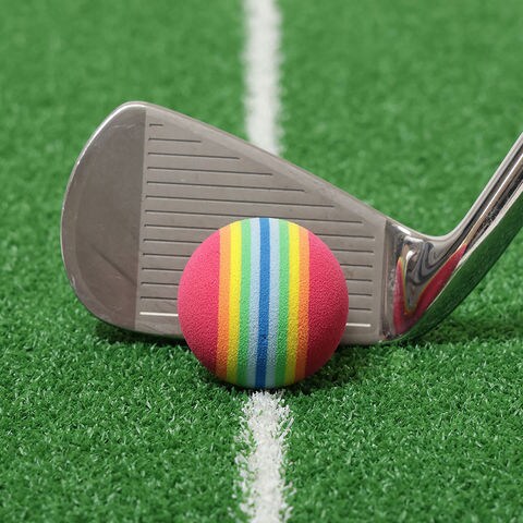 カラフルなラインで回転や球筋のチェックが可能なゴルフ練習用ボール。