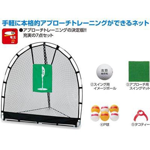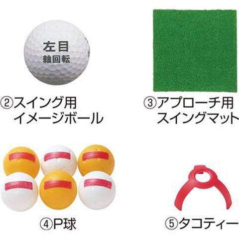 セット内容:ネット(タペスト付) 、P球 (41 mm) × 6 、マット (25 × 25 cm) 、素振りマーカー台紙、スイングマスター台紙、パットマスター台紙