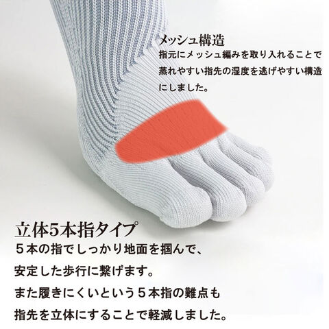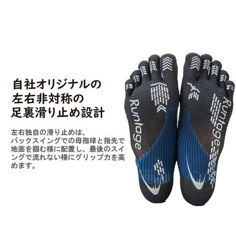 5本指で大地をしっかり掴み、足裏の土踏まず部分のアーチを支える特殊編みで安定したアドレスを実現します。