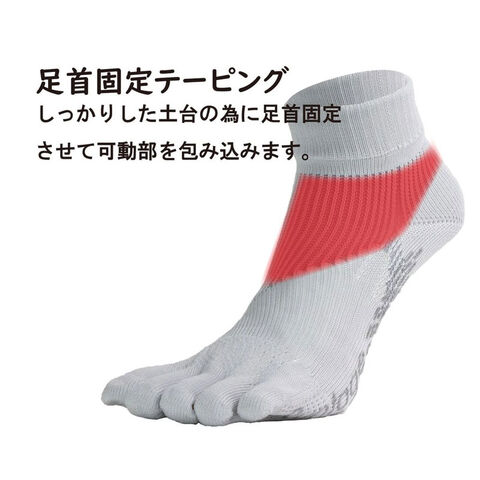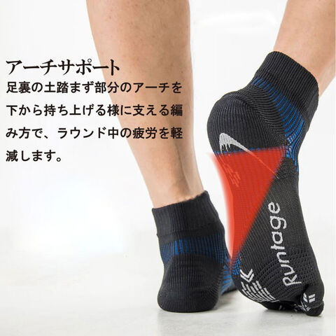 メッシュ、5本指、滑り止め、アーチサポート & 5本指でさらなるスコアアップを目指すギアソックスでバンデージ・テーピング理論を活用し、可動部を包み込むようにホールドし、足首のグラつきを抑えます。