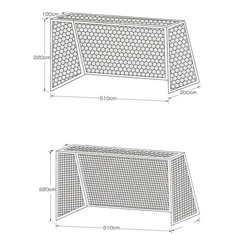 仕様:ジュニアサッカーゴールサイズ、2枚1組、白色、取付ロープ付、ネット収納袋付