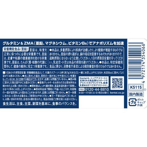 Kentai(ケンタイ) グルタミン ZMAプラス サプリメント(栄養補助食品) スポーツサプリメント 機能性成分 K5115