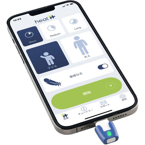 ヒートイットはスマートフォンの充電ポートに挿し込んで使用する虫さされ対策機器です。