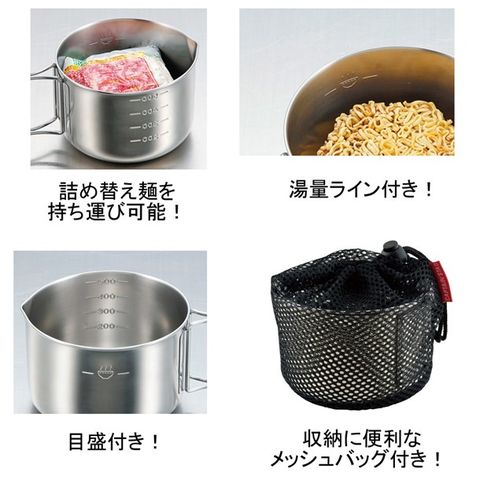 鍋は美しく、丈夫で錆びにくいステンレス製!バッグパッキングに最適!収納に便利なメッシュバッグ付き!!