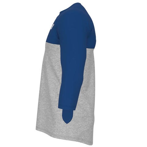 左胸と肩甲骨周りと両上腕部に高着圧のタイトなストレッチ素材、メインボディは心地よくフィットする素材を採用した左投げ用アシンメトリーロングスリーブトップ。