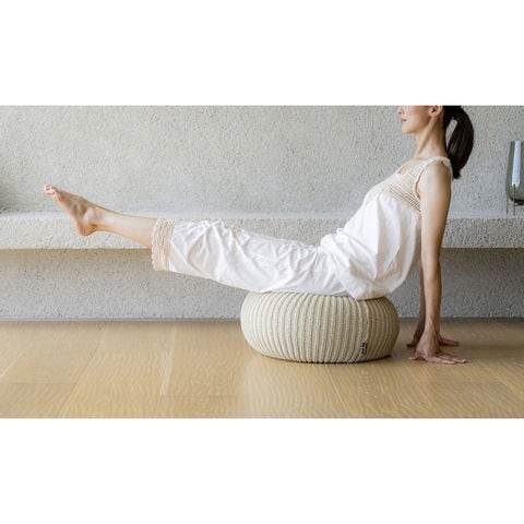 ニット風のやわらかくかわいいカバー付きでインテリアに馴染む、ドーナツ型バランスボール。