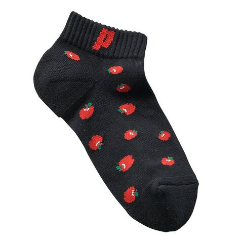 ロゴはラメ糸を採用したリンゴ柄のソックス