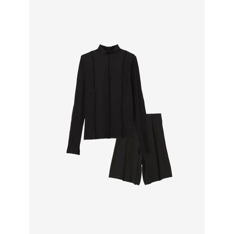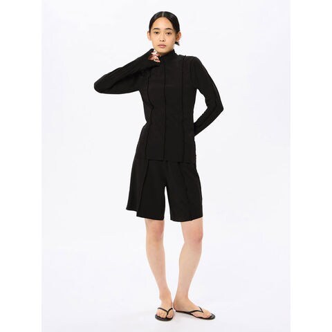 長袖のトップスは、ハイネック仕様で首まわりの日焼けをカバー。
