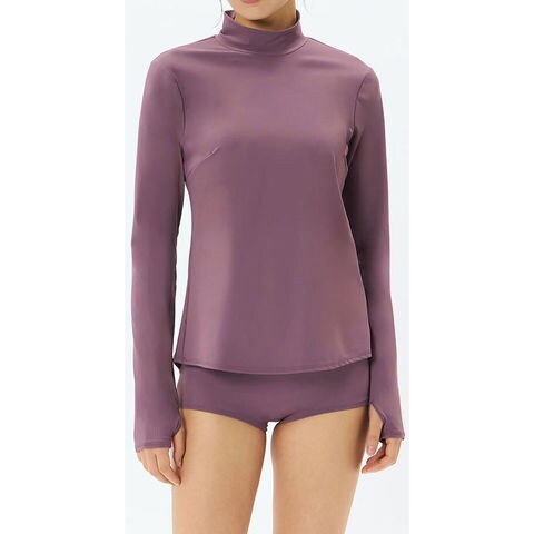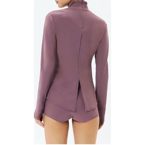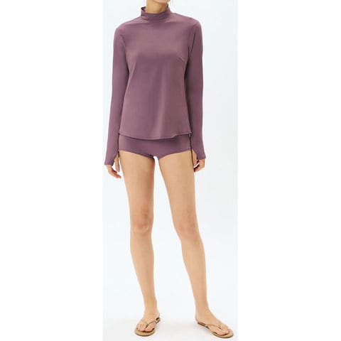 首元のUVケアもできるハイネックデザインで、バスト下から裾にかけての絶妙なラインが美しいボディラインを演出します。