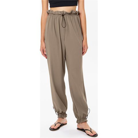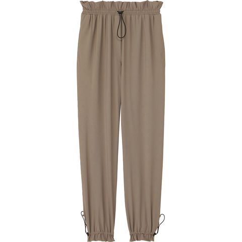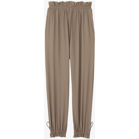 GRS認証のすてられるべき廃棄物を100%使用したナイロン糸レコ・ナイロンを使用したリサイクル素材センシティブ レコ採用のレディースギャザーパンツです。