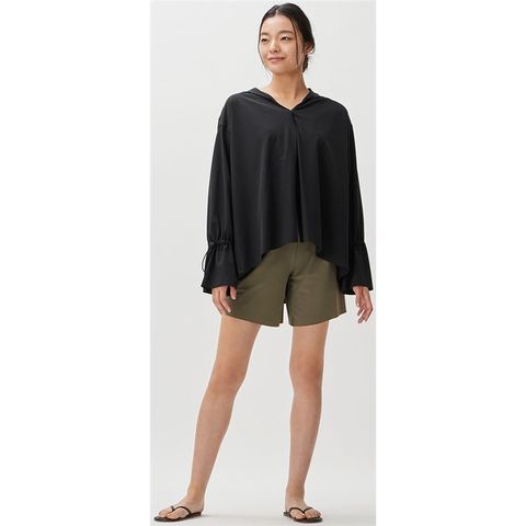 袖は、その日の天気(日差しの量)や気分で丈、デザインを調整できるドローコード付き。