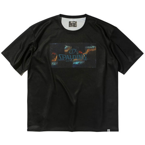 ダークトーンのネオンカラーのマーブル柄でSPALDINGロゴを配したTシャツ。