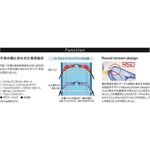 機能:曇り止めレンズ、UVカット、鼻ベルト4サイズ付属、FINA承認ゴーグル