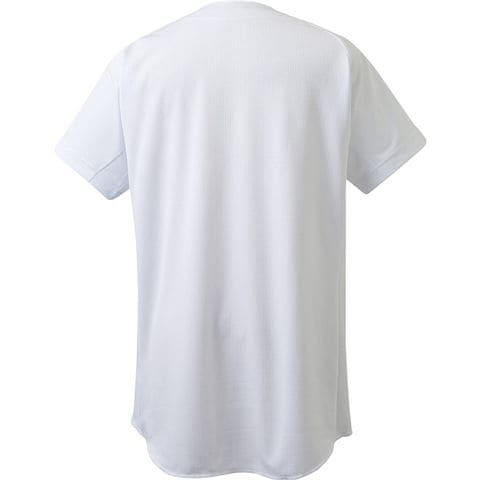 NPBの2球団で採用されている、デサントの定番素材【スクエアメッシュ】を採用した2ボタン仕様の試合用ユニフォームシャツ。