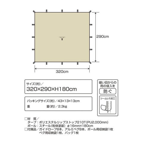 CAPTAIN STAG(キャプテンスタッグ) トレッカー レクタタープセット320x290UV カーキ トレッキング キャンプ用品 タープ (UA1089)