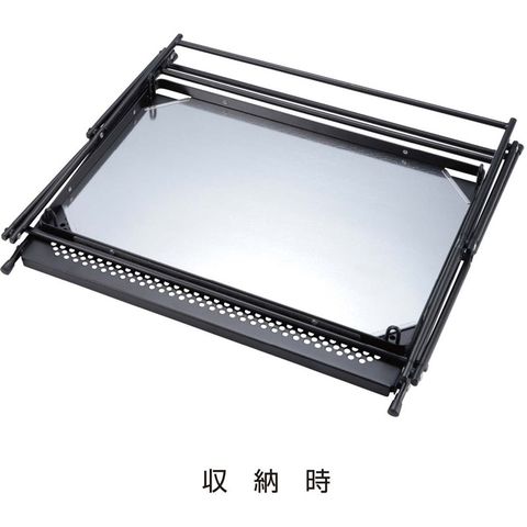 上段には火にかけた鍋やダッチオーブンが置けるステンレス天板を採用。