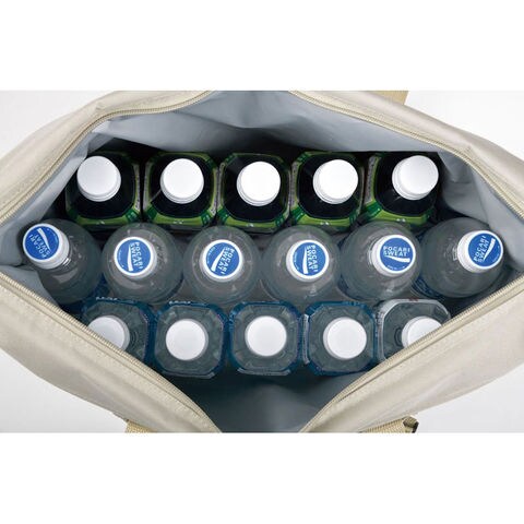 本体表地/ポリエステル(PVCコーティング)撥水加工、内生地/EVA防菌加工、断熱材/ポリエチレンフォーム、メッシュポケット付板/ポリエチレン、ベルト/ポリプロピレン